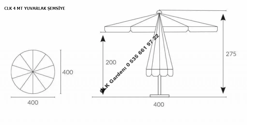 CLK MEGA İPLİ BACALI MEGA ŞEMSİYE 4 Metre Yuvarlak